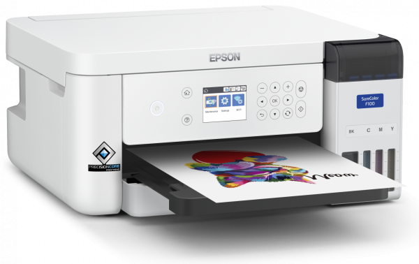 Epson SureColor SC-F100 je prvi štampač A4 formata za sublimacionu štampu. Idealan je za proizvodnju promotivne i personalizovane robe (šolje, foto kamen, alu boce, podloge za miša, puzzle, poliesterske majice i ostali proizvodi od poliestera ili sa poliesterskim premazom - namenjeni za sublimacionu štampu).