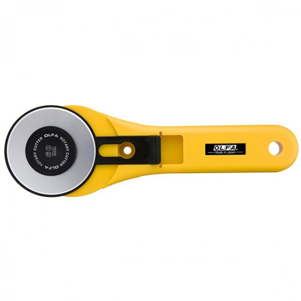 Najveći rotacioni skalpel OLFA RTY-3/G sa rotirajućim nožićem prečnika 60mm, najbolja je opcija za sečenje debljih materijala ili više slojeva tkanine. Secite pritiskom na predmet odnosno materijal na podlozi za sečenje. Izdržljiva ručka poseduje sigurnosni poklopac za sečivo, kada se ne koristi. Ergonomski dizajn prilagođen je za upotrebu desnom i levom rukom.